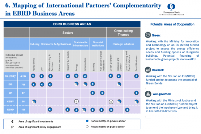 Below is the outline of the International Partners’ Complementarity in EBRD Business Areas: